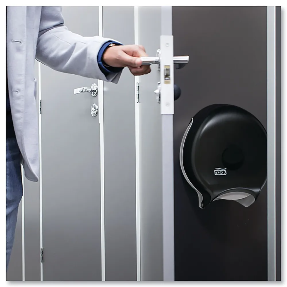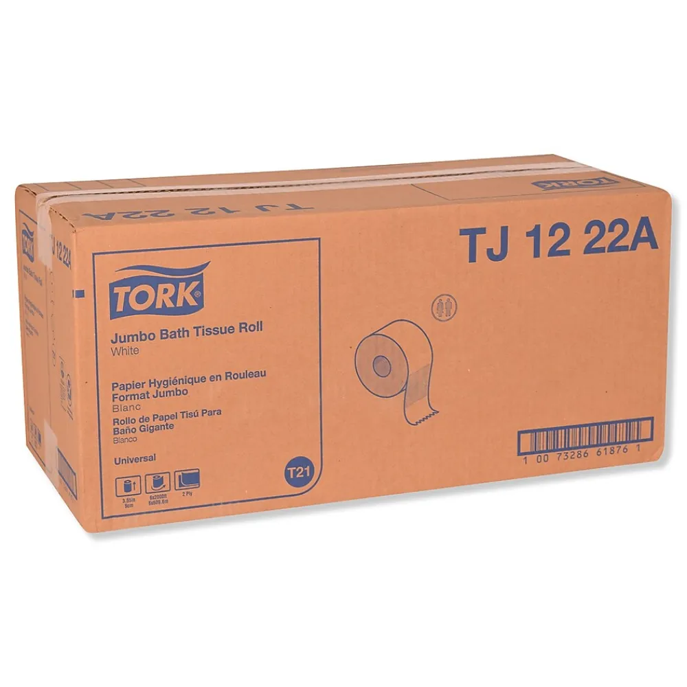 TorkĀ® Universal Jumbo Bath Tissue delivers value and performance. Universal core is designed to fit virtually all size jumbo tissue dispensers. Designed to maximize performance and convenience while minimizing your overall costs. Extra long-lasting tissue means fewer changes, less maintenance and better control of paper waste. Smaller case cubes, frees up about 40% more storage space vs. conventional rolls. All Tork bath tissue products are safe for septic systems.