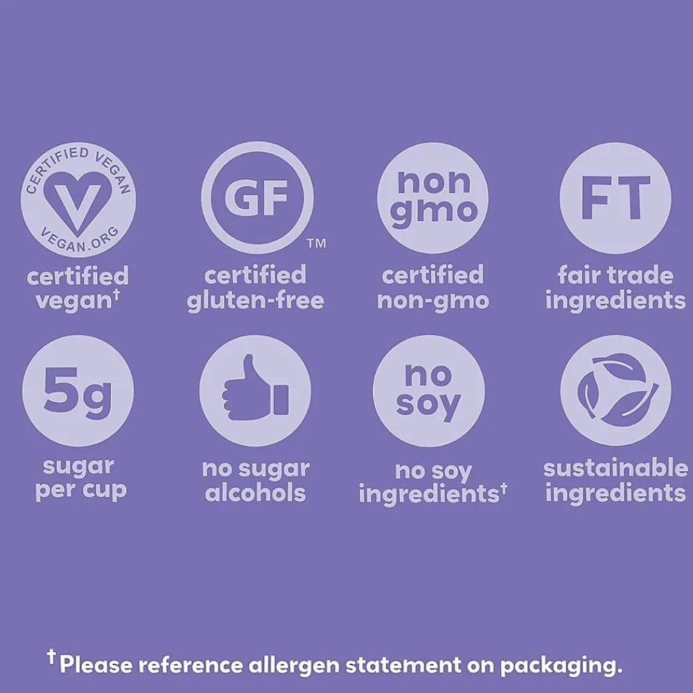 - UNREAL QUALITY: our cups are made in small batches and are certified vegan, gluten free, Fair Trade, and non-GMO. We also believe in using certified sustainable palm oil, and you’ll never find any artificial flavors, preservatives, or fillers!