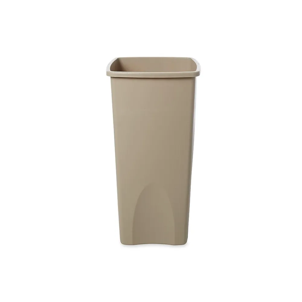 Keep waste contained in large work areas with this beige trash can. The durable, crack-resistant construction makes it tough enough for indoor and outdoor environments, and this Rubbermaid resin waste can has a 23-gallon capacity for less frequent emptying.