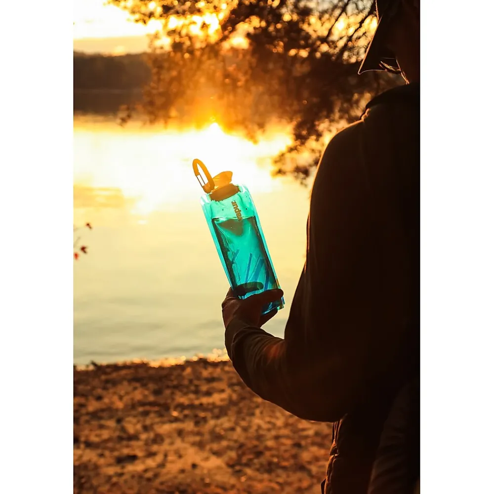 The Vapur Anti Bottle is BPA free and stands when full and folds when empty. The bottle is dishwasher safe and can be attached to any active gear through the integrated carbiner on the cap. It is the perfect companion for your next adventure, wether hiking in the mountains, camping, kyaking or simply taking the family on that special vacation, hydrate anywhere and everywhere!