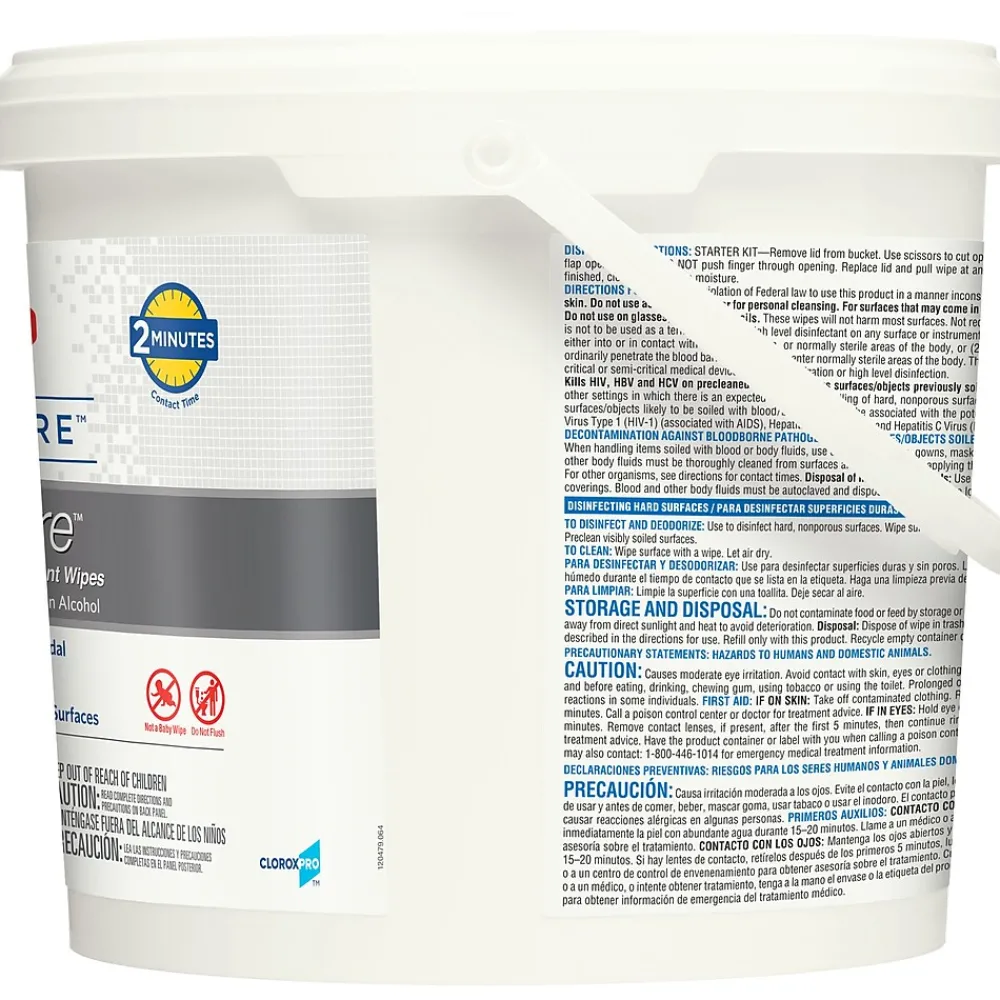 Clorox® Healthcare VersaSure Cleaner Disinfectant Wipes kill microorganisms quickly on a broad range of surfaces. These strong and durable alcohol-free wipes are a one-step solution to cleaning and disinfecting. VersaSure™ wipes are EPA-registered to kill pathogens on hard surfaces in as fast as 30 seconds for most bacteria and viruses. These disinfectant wipes meet EPA criteria for use against SARS-CoV-2, the virus that causes COVID-19. Designed for patient and staff comfort, these wipes are formulated with no harsh chemical odors, fumes, or added fragrances. Available in a variety of wipe sizes to fit a variety of cleaning needs. Intended for use in commercial settings.