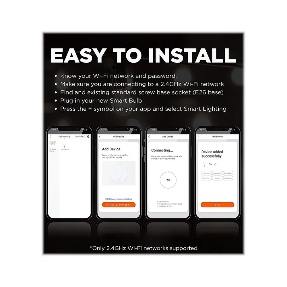 The Viribright Smart Wi-Fi LED light bulb syncs with the brand’s free ViriSmart mobile app (compatible with Android and iOS) to give you a full range of controls. This allows you to adjust your lighting on the go at any time, regardless of your physical location. This Wi-Fi smart light bulb is on your time: you can schedule it to turn on or off at your desire, so you don’t have to worry about doing so manually. Along with that, it provides you with a multitude of warmth options as you adjust to your perfect tone. The 60W equivalent smart LED bulb consumes only 9W of energy and provides bright light at 800 lumens total. This LED smart light is one of the most versatile lighting solutions on the market. From desk lamps to decorative lighting, this smart light allows you to make the most out of your existing fixtures while updating your smart home standards with next-gen lighting. You’re looking at over 13 years of optimal smart home lighting with this bulb. It burns less energy and lasts longer.