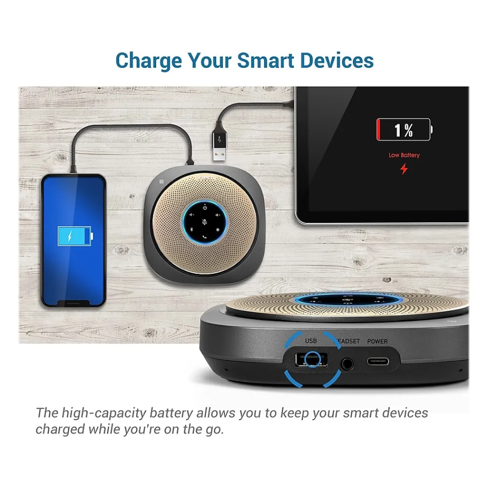 - Bluetooth conference speakerphone offers quick and easy connection to your smartphone, tablet, or laptop to meet your communication needs