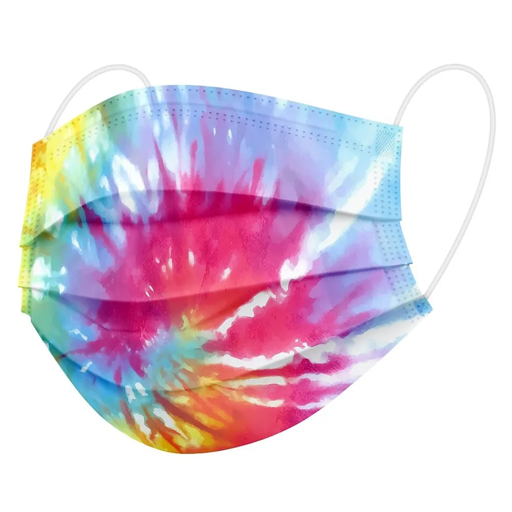 - Offers full coverage of the nose and mouth and comes in a multicolored tie-die design