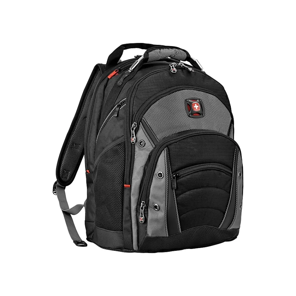 Protect portable electronics during your daily commute with this laptop backpack. Ballistic nylon construction provides the strength and durability needed to withstand daily use, while the padded back and shoulder straps offer added comfort for long train rides. This backpack features an expandable laptop pocket to shield your device against accidental bumps and drops. The quick-access pocket keeps keys and cards close at hand, and an MP3 player pocket holds the device securely in place as you listen to favorite playlists. With handy side pockets for water bottles and travel mugs, this Wenger Synergy laptop backpack is perfect for students and office workers on the go.
