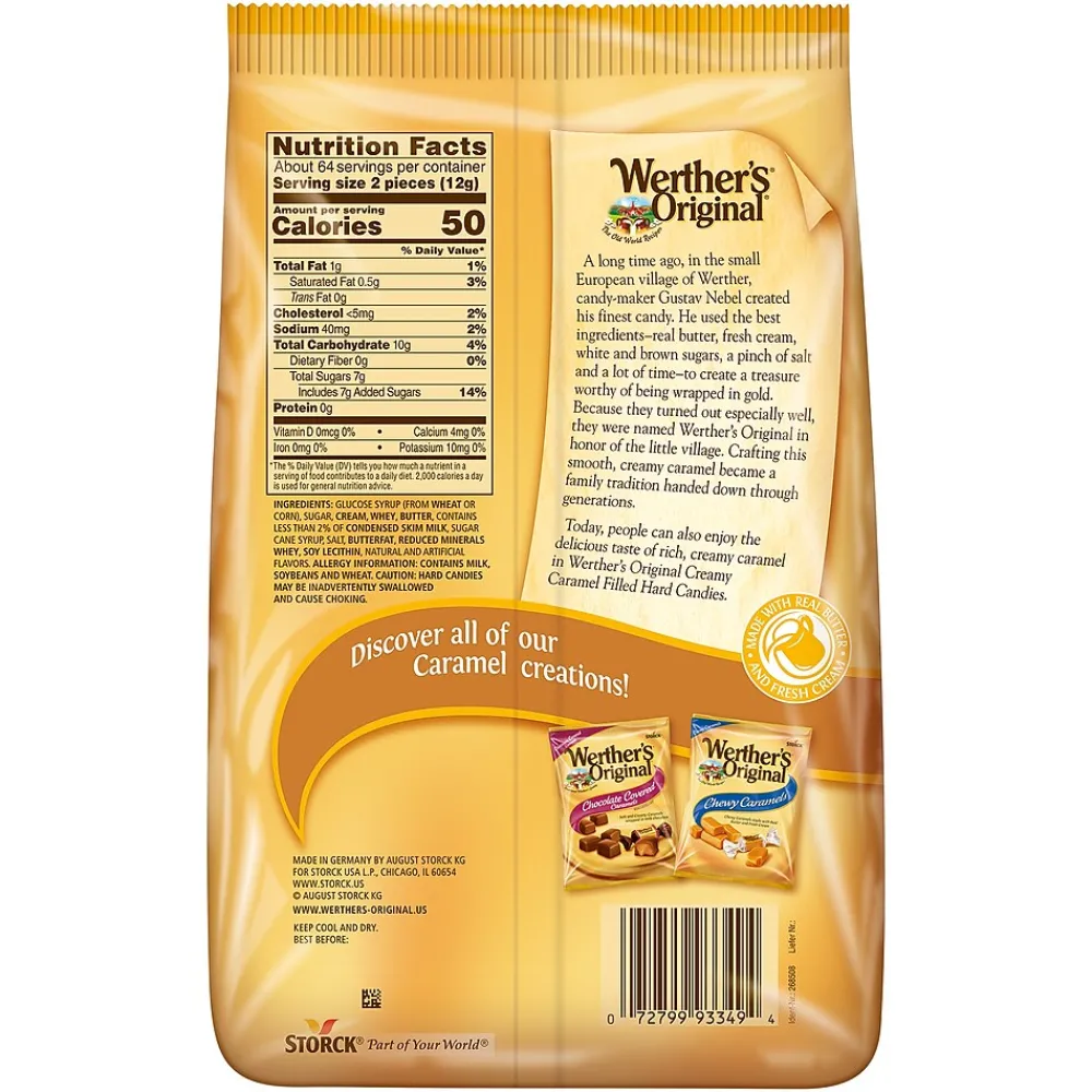 Enjoy a sweet treat to get you through the day with these hard candies. Filled with caramel, these treats provide a delicious hard outer shell and smooth, rich creamy center. These Werther’s Original caramel hard candies come in a 27-ounce bag, making it easy to stock up or share around the office.
