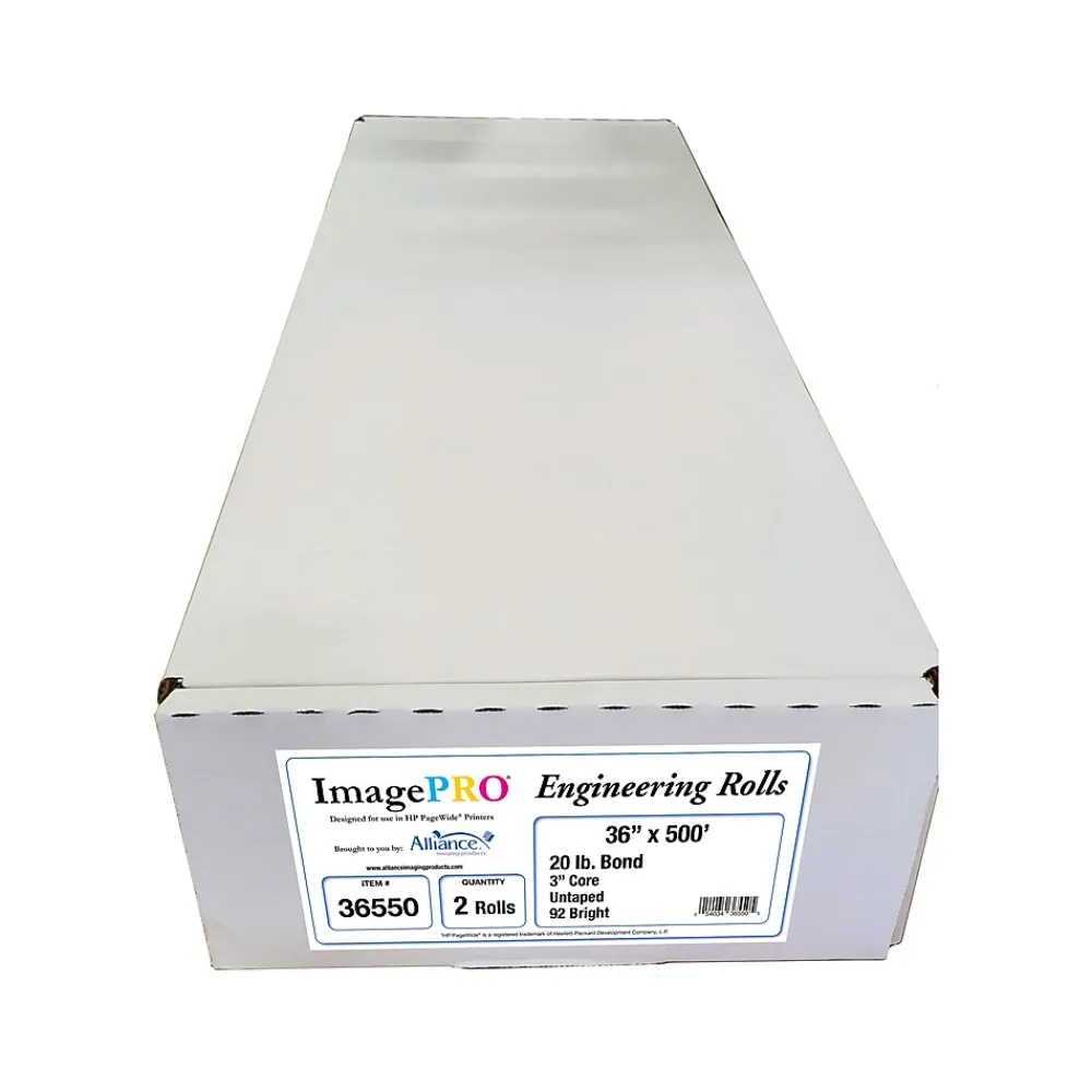 The Alliance ImagePRO wide-format treated bond roll is made of high-quality bright white paper that produces crisp, vivid images that are easily readable and longer-lasting.