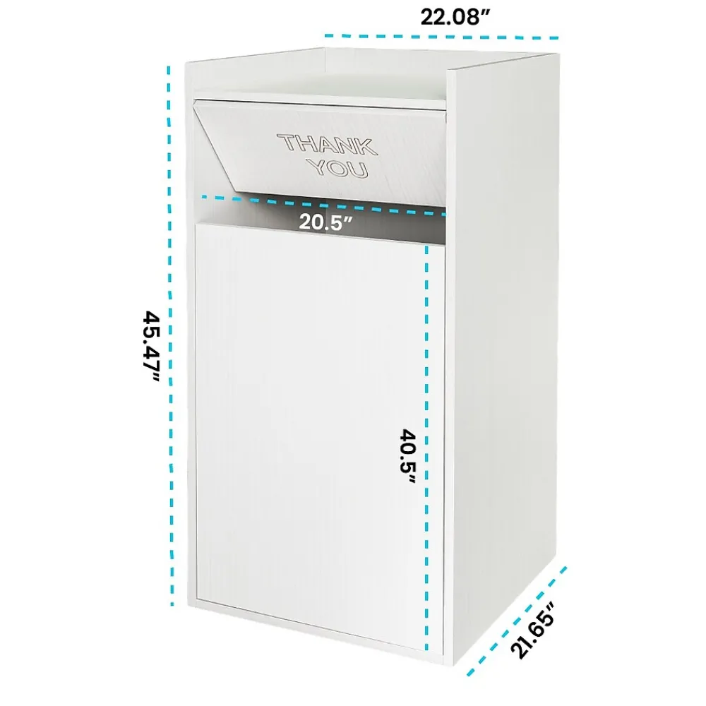 The Alpine Industries Wooden Waste Receptacle is a commercial grade solution for holding large amounts of waste. Expertly crafted with a total Internal Height of 40.5 in x 19 in, you’ll have plenty of space to place a large capacity liner of up to 40 Gallons. These Waste Receptacles are the perfect waste management solution for food service facilities. Open bottom door for inserting up to 40-Gallon Capacity Liners. The unit is equipped with a built-in 22 in x 21 in top tray holder and a push door with a “Thank you” message engraved on the unit. The Alpine Industries Wood Waste Bin Receptacle 40 Gallon Trash Can is neat, clean and attractive, so that you can have all the functionality and efficiency of a waste bin, without sacrificing your facilities appearance.